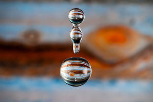 O fotógrafo Markus Reugels gasta centenas de horas tentando registrar cuidadosamente essas belas e impressionantes imagens. Em uma delas, pode-se ver a imagem da Terra vista do espaço, que surpreendentemente se encaixa perfeitamente dentro da gota d’água.